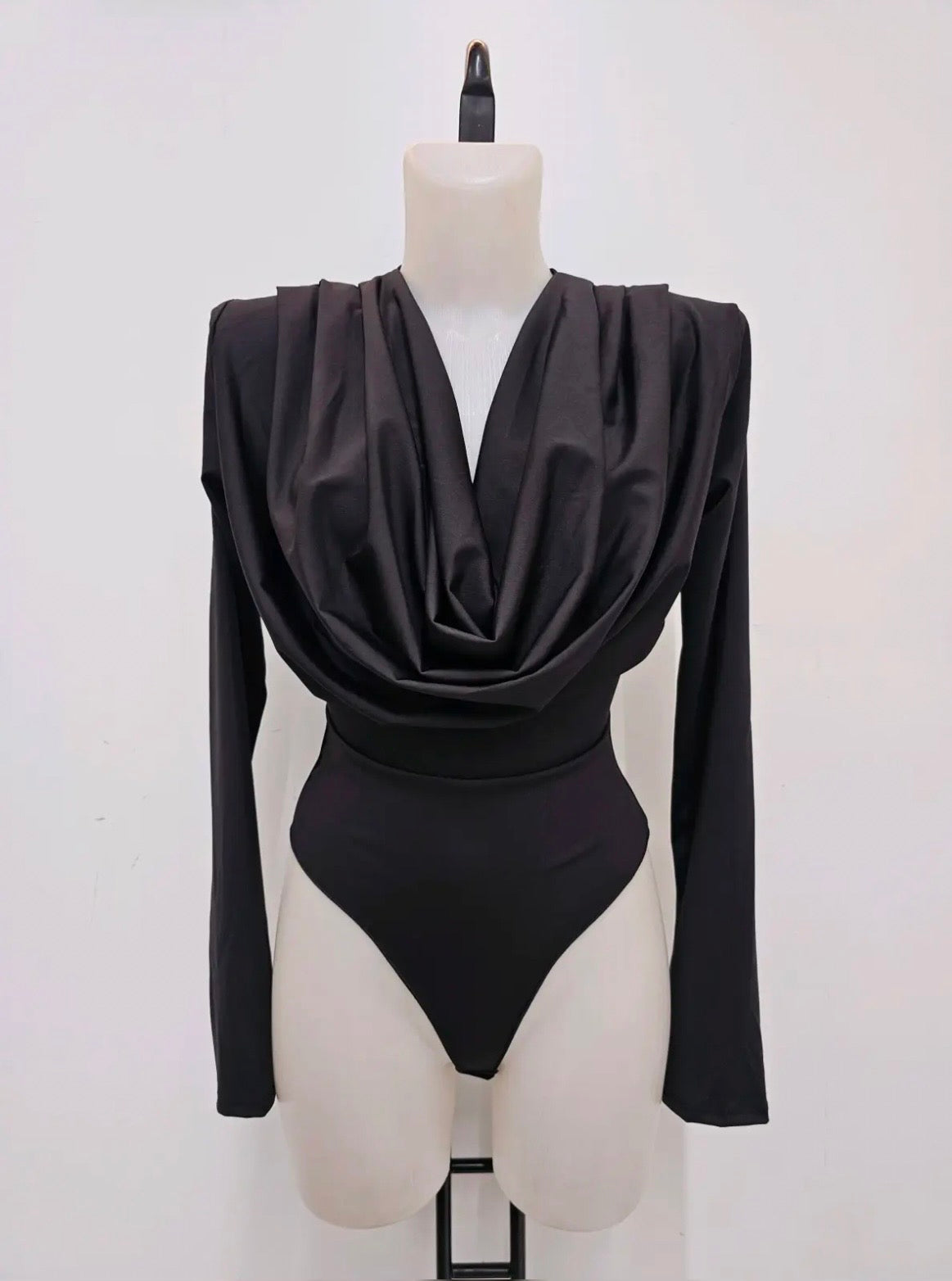 Body con escote drapeado y hombreras.
